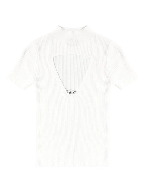 white ribbed knit high neck cut-out detailing Oval D logo plaque short sleeves