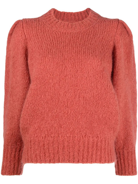 ribbed-trim bell-sleeves jumper from ISABEL MARANT featuring light red, mohair, knitted construction, ribbed trim, crew neck, bell sleeves and straight hem.