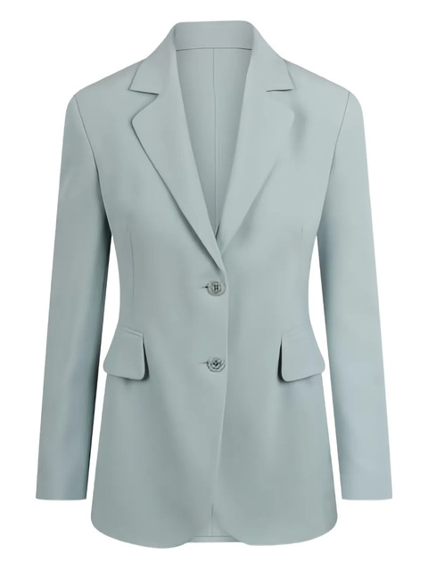 light blue notched lapels button fastening flap pockets long sleeves buttoned cuffs