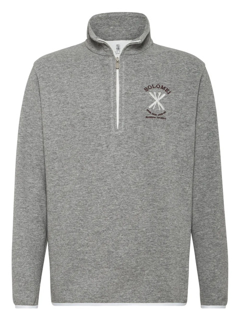 grey half-zip fastening long sleeves embroidered logo ribbed cuffs techno fabric straight hem