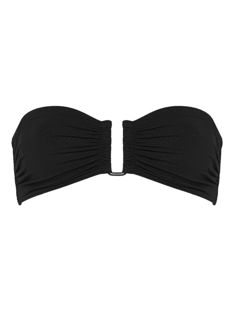 black bandeau style gathered detail U-ring detail clasp fastening Be mindful to try on swimwear over your own garments.