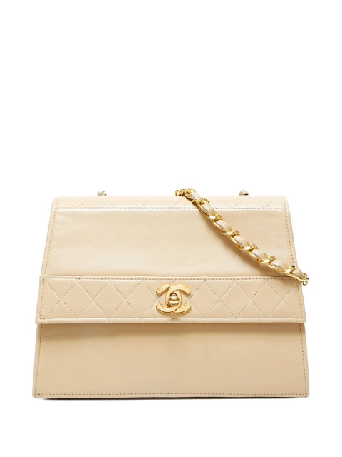 1989-1991 beige Diamond Stitch chain strap gold-tone hardware twist-lock fastening internal zip-fastening pocket