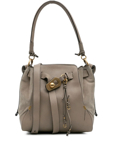 Chloe Chloé Pre-Owned 2017 Medium Calfskin and Suede Owen Bucket Bag satchel - 32483680 (LPN377636)