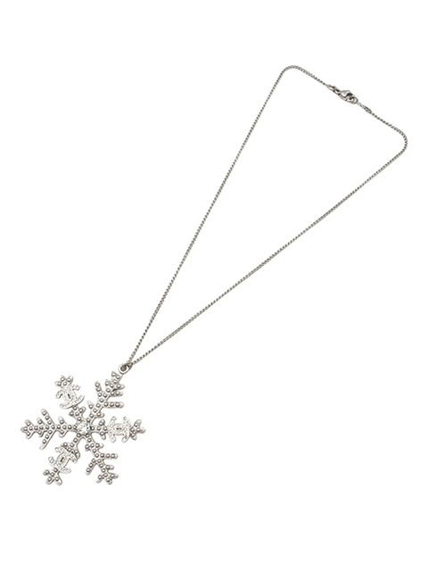 CHANEL Pre-Owned 2006 Silver Plated CC Rhinestone Snowflake Pendant Necklace costume necklace - 32436293 (LPN377640)