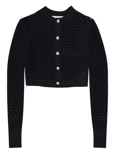 black openwork knit button fastening long sleeves ribbed trims round neck