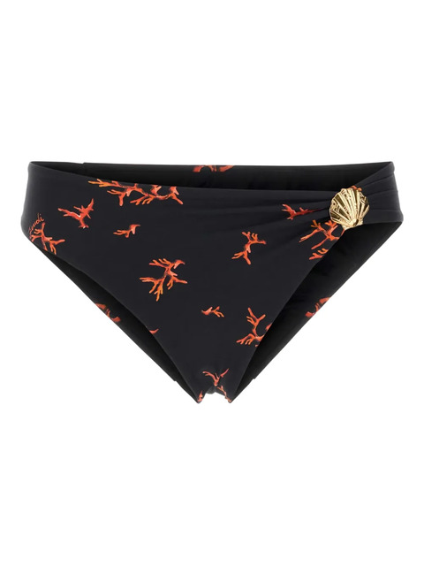 black all-over coral print elasticated waistband gold-tone shell plaque Be mindful to try on swimwear over your own garments.