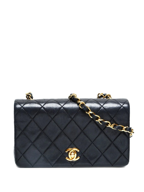1989-1991 black Matelassé effect gold-tone hardware chain-link shoulder strap internal slip pockets turn-lock fastening