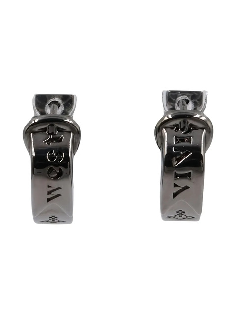 black orb detail engraved lettering for pierced ears hoop style brass