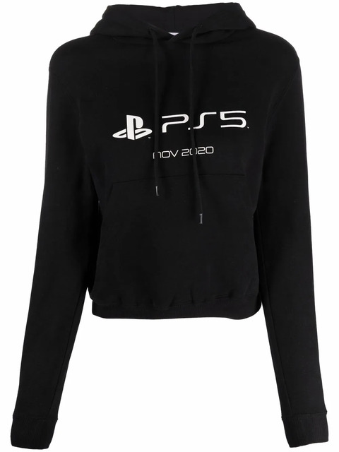 black cotton elasticated hem PS5 print logo print at the sleeve logo print to the rear drawstring hood long sleeves front patch pocket