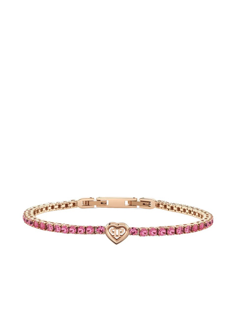 gold-tone pink crystals heart embellishment tennis style clasp fastening Normal everyday use and external agents may reduce the lustre of gemstones and gold surfaces. To maintain, use specific, non-abrasive products specially meant for cleaning jewellery.