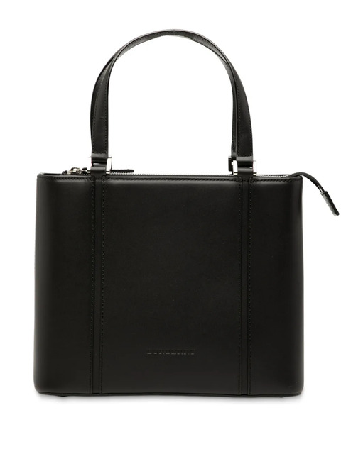 This handbag features a leather body, flat leather handles, a top zip closure, and interior zip and slip pockets. Black. Inclusions: dust bag. Condition: GOOD. This previously owned and used item is in good condition with minimal signs of use. This may include fading of material or plating and scratches. Please refer to the photos on this product page for a detailed view of the item, including any damages declared.