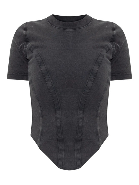 dark grey cotton short sleeves panelled design round neck tonal stitching