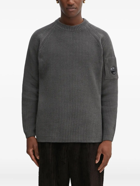 grey textured knit patch at the sleeve round neck long sleeves ribbed hem C.P. Company suggests removing any detachable accessories before washing.