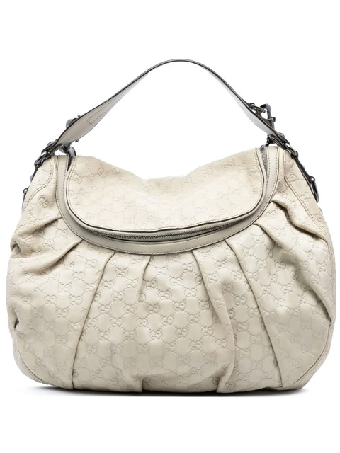 embossed leather body flat leather handle top zip closure interior zip and slip pockets.White.Serial Number: 228584 002123.Inclusions: shoulder strap.Condition: GOOD. This previously owned and used item is in good condition with minimal signs of use. This may include fading of material or plating and scratches.Declared Damages: Handle/Strap Feature(s) Minor Splitting.Please refer to the photos on this product page for a detailed view of the item including any damages declared