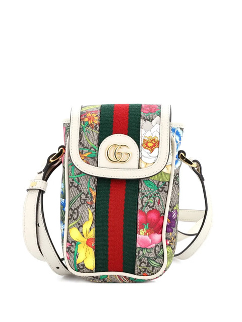 Gucci Pre-Owned Ophidia Flap Phone Holder Flora GG Coated Canvas crossbody bag - 32494442 (LPN378700)