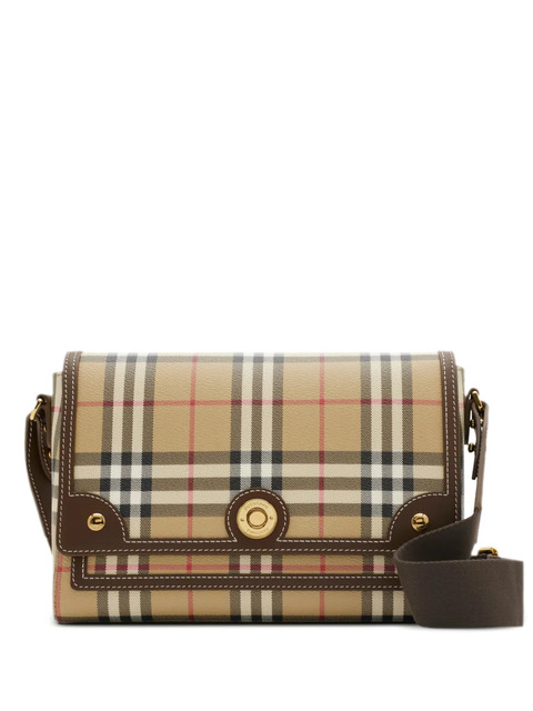sand beige/multicolour cotton blend foldover top with magnetic fastening adjustable detachable shoulder strap Vintage Check pattern logo plaque leather trim gold-tone hardware cotton lining