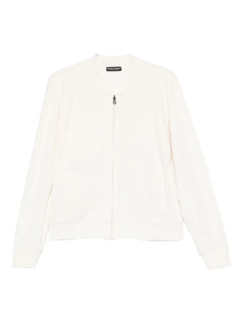 ivory zip fastening long sleeves round neck tonal logo detail ribbed hem