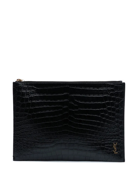 Saint Laurent Pre-Owned 2019 Croc Embossed Leather Tiny Monogram Zipped Tablet Holder clutch bag - 32495972 (LPN378930)