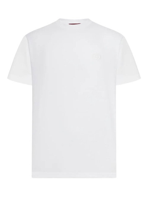 white cotton Interlocking G logo embroidery round neck short sleeves straight hem