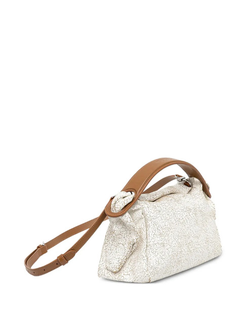 off-white textured finish top handle detachable shoulder strap zip fastening silver-tone hardware