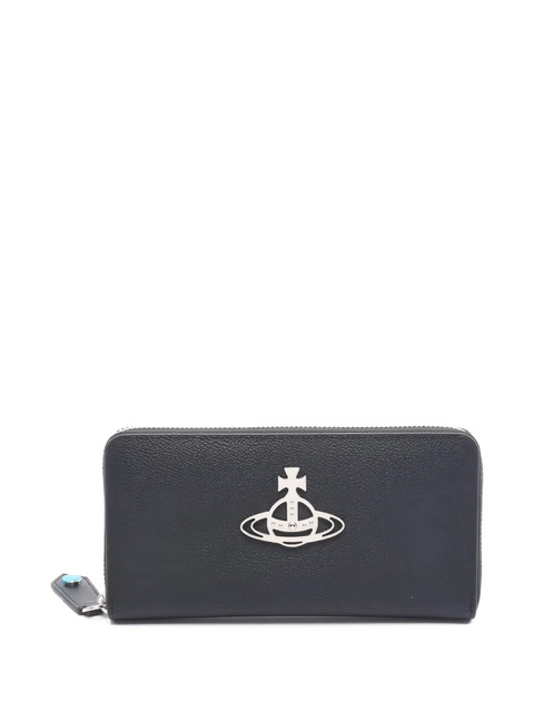 2020 black leather Orb-plaque zip-around fastening multiple card slots