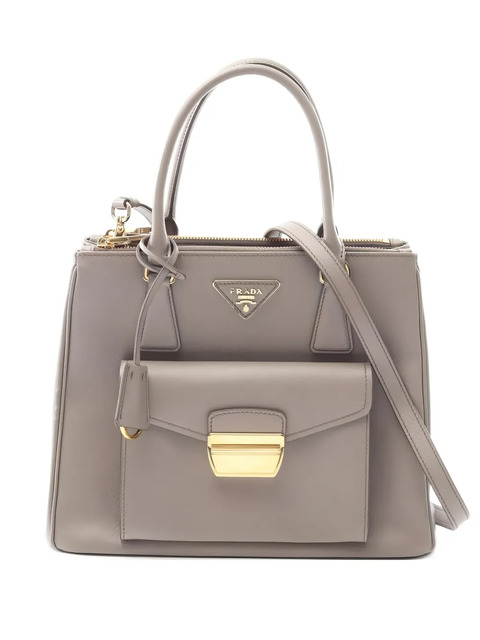 grey saffiano leather top handle detachable shoulder strap gold-tone hardware zip fastening