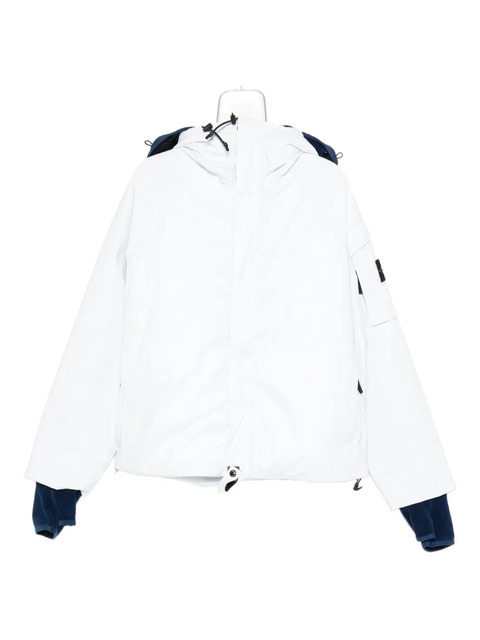 blue concealed zip fasting touch-strap fastening detachable and adjustable cuffs detachable hood lining logo patch hooded side zip-fastening pockets quilted lining