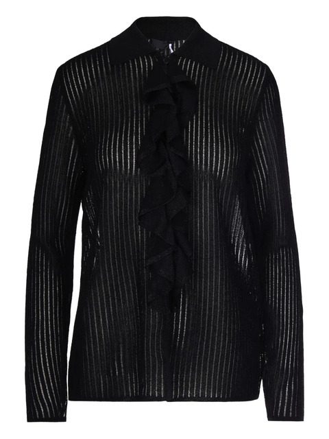 black vertical stripes ruffled detail long sleeves button fastening pointed collar