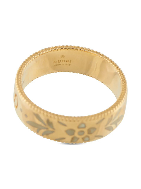 rose gold-tone 18K rose gold enamel floral motif 7mm band ridged edges interlocking GG logos Your purchase will arrive with a gift box. Normal everyday use and external agents may reduce the lustre of gemstones and gold surfaces. To maintain, use specific, non-abrasive products specially meant for cleaning jewellery. Condition: EXCELLENT. This previously owned item is in near-perfect condition with no signs of damage or use.