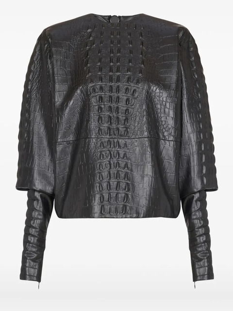 Balmain crocodile-embossed puff-sleeve top - 31365156 (LPN379367)