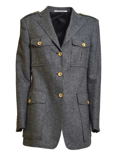 grey flap pockets button fastening shoulder epaulettes buttoned cuffs notched lapels