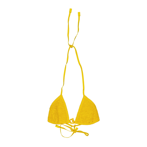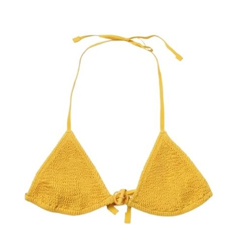 Burberry Ladies Swim. Fashion category: Swimsuits. SKU: 8090113. Color: Sunflower. Burberry Womens Crinkled-Nylon-Bikini-Top. Triangle bikini top with tie-up shoulder straps and a sleeveless design. 94% Polyamide, 4% Elastane. Made in Portugal.