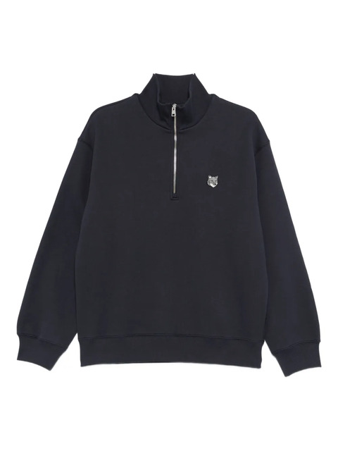 navy blue fox head appliqué quarter zip fastening high neck long sleeves ribbed hem