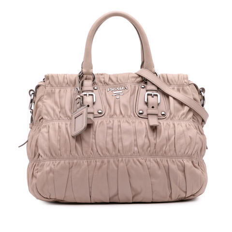This satchel features a gathered leather body, rolled leather handles, a detachable flat leather strap, a top zip closure, and interior zip and slip pockets. Exterior front has been repainted. Prada Ladies Satchel. SKU: 503OXN5HPBRJKMBY. Color: Brown. Size: 15 x 29 x 31. Pre-owned Prada Nappa Gaufre Satchel 503OXN5HPBRJKMBY.