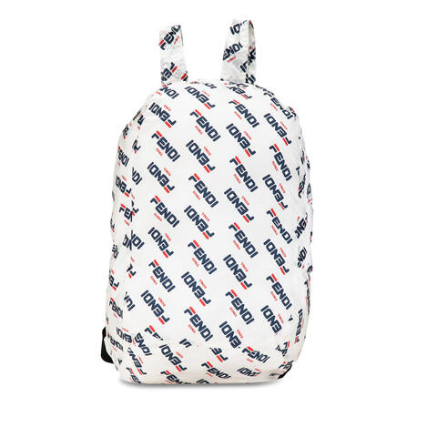 The pre-owned Fendi Fila Mania Packable Backpack 7AR730 is a standout designer accessory that blends iconic branding with modern versatility. Crafted with a printed nylon body, this stylish Fendi ladies backpack comes in a crisp white colorway and offers a sleek, lightweight design that is easy to carry wherever the day takes you. Measuring 14 x 41.5 x 28.5, it delivers a fashionable statement while reflecting luxury and contemporary style.<br /><br /> Designed for both fashion and functionality, this pre-owned Fendi Fila Mania Packable Backpack features flat back straps and a top zip closure for secure, comfortable wear. Its practical yet elevated silhouette makes it an excellent choice for travel, errands, casual outings, or city days when you want designer appeal without sacrificing convenience. With its distinctive look and easy-to-style design, this backpack is perfect for everyday use.<br /><br /> As a pre-owned authentic Fendi handbag, this backpack offers exceptional value for luxury lovers seeking a coveted designer piece at a more attainable cost. Rating: Pre-owned. Condition for preown: please review all available product details and images for the current cosmetic condition and signs of prior use. This is a great opportunity to own an authentic handbag at a more accessible price.