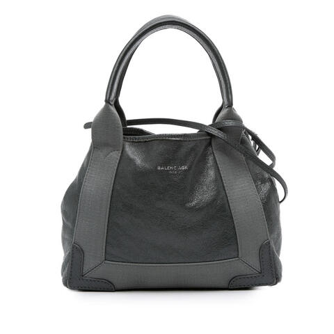 The Navy Cabas XS features a leather body, flat leather handles, a flat leather strap, an open top, and an interior zip pocket. Balenciaga Ladies Satchel. SKU: 542018 1270 Y 002123 O. Color: Black. Size: 7 x 19.5 x 24. Pre-owned Balenciaga Leather Navy Cabas Satchel XS 542018 1270 Y 002123 O.