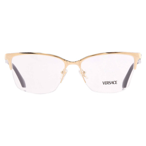 Versace Eyeglasses. Series number: VE1304. Color code: 1002. Shape: Cat Eye. Lens Width: 54 mm. Lens Bridge: 16 mm. Arm Length: 140 mm. Frame Material: Metal. Frame Color: Gold/Black. Lenses Type: Demo. Rim Style: Semi-Rimless. UPC/EAN code: 8056262464243. Versace Demo Cat Eye Ladies Eyeglasses VE1304 1002 54.<br/><br/>Manufacturer's Packaging Included. Packaging Size And Color May Vary.