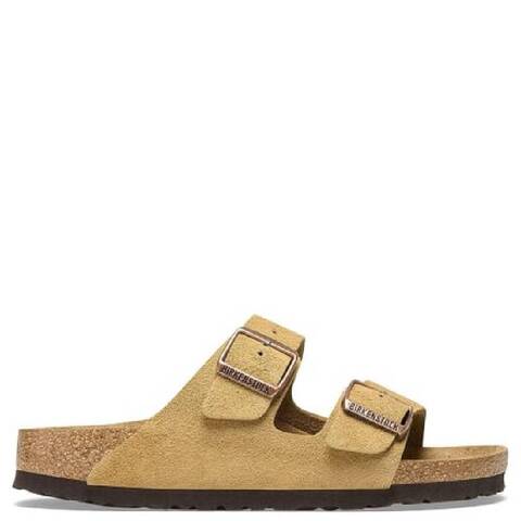 Birkenstock Ladies Slippers. SKU: 1026174-LATTE CREAM. Color: Latte Cream. Vamp Style: Slip-on. Birkenstock Arizona Suede Sandals. This sandal features a contoured cork latex footbed that creates custom support with wear, two adjustable straps with metal pin buckles, and is complete with legendary Birkenstock design elements.. Made in Germany. Upper Material: Suede. Lining Material: Suede. SoleMaterial: EVA/Rubber. <br/><br/><b>Please visit the brand website for sizing information.</b>
