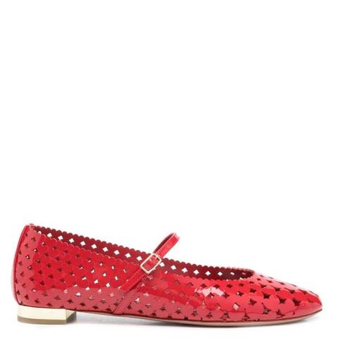 Aquazzura Ladies Flats. SKU: AMSFLAA0-PAT. Color: Lipstick. Aquazzura Amourose Patent Ballet Flats. The Amourose flats are crafted from glossy, lipstick-red patent leather and feature delicate heart-shaped cut-outs for a playful touch. Designed with a pointed toe, metallic-plated heel, and side buckle fastening, they are finished with a flat leather sole for both style and comfort. Outer: 100% Leather. Made in Italy. <br/><br/><b>Please visit the brand website for sizing information.</b>