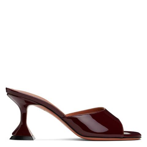 Amina Muaddi Ladies Sandals. SKU: LUPITA SLIPPER 70. Color: Patent Wine. Amina Muaddi Patent Wine Lupita 70 Sandals. The Lupita Slipper showcases effortless elegance with its patent leather upper and leather/rubber sole. Designed in a slip-on style, it features a square open toe and a flared heel. Finished with a soft goat leather lining. Made in Italy. <br/><br/><b>Please visit the brand website for sizing information.</b>