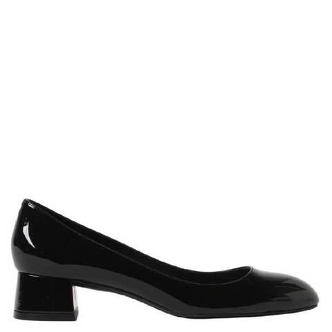 Stuart Weitzman Ladies Heels. SKU: SG823 BLK-BLACK. Color: Black. Stuart Weitzman Vivienne 35 Patent Pumps. The Vivienne pumps are crafted from calf leather with a glossy patent finish. Featuring a classic round toe, branded leather insole, and a low block heel with 35 mm height. 100% Leather. Made in Italy. <br/><br/><b>Please visit the brand website for sizing information.</b>