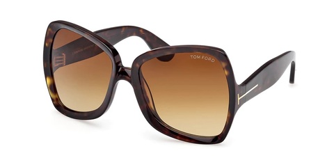 Tom Ford Sunglasses. Series JERRY. Series number: FT1222. Color code: 52F. Shape: Irregular. Lens Width: 60 mm. Lens Height: 58 mm. Lens Bridge: 18 mm. Arm Length: 135 mm. 100% UV protection. Non-Polarized. Frame Material: Acetate. Frame Color: Dark Havana. Lenses Type: Brown Gradient. Rim Style: Full-Rim. UPC/EAN code: 889214558954. Tom Ford JERRY Brown Gradient Irregular Ladies Sunglasses FT1222 52F 60.<br/><br/>Manufacturer's Packaging Included. Packaging Size And Color May Vary.