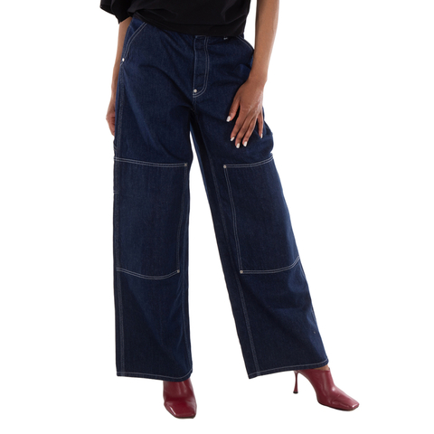 Stella McCartney Ladies Bottoms. Fashion category: Jeans & Denim. SKU: 6D03013SPH80-4003. Color: Dark Blue. Stella McCartney Straight-Leg Denim Cargo Jeans. This cotton denim jeans features two side cargo pockets, a front button and zip fastening, two side inset pockets, belt loops, two rear patch pockets, and a logo print on the rear. 100% Cotton. Made in Italy.
