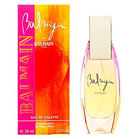 Launch year: 2002. Fragrance Family: Amber Floral. Top notes: Angelica, Pink pepper, Passionfruit, Violet leaf, Bergamot. Heart notes: Coffee, Vanilla, Jasmine. Base notes: Cappuccino, Iris petals, Cashmere wood, Sandalwood. Design house: Balmain. Design house category: fashion. Design house country: France. Scent name: Balmya. Gender: Ladies. Category: Fragrance. SubType: EDT Spray. Size: 1.7 oz. Barcode: 3380290053267. Balmain Ladies Balmya EDT Spray 1.7 oz Fragrances 3380290053267. <br/><br/> This item is only valid for shipment in the Contiguous United States & Canada.