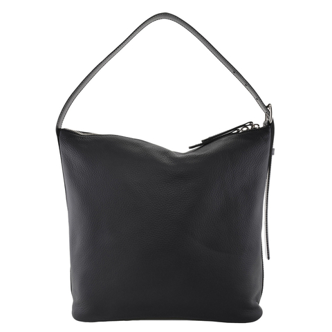 A.P.C. Ladies Shoulder Bag. SKU: PXCBL-F61902 -NOIR. Color: Black. A.P.C. Vera Shoulder Bag. The Vera bag by A.P.C. is a sleek square shoulder bag crafted from black grained leather with a smooth leather handle. Featuring a large adjustable shoulder strap with a gold-tone buckle, it can be carried on the shoulder or by hand. A two-way zipper with leather pulls opens to a cotton-lined interior with a single pocket, finished with an embossed gold-tone A.P.C. Rue Madame Paris logo. Details: Grained leather body with smooth leather handle. Adjustable shoulder strap with gold-tone buckle. Large two-way zipper with leather pulls. Interior: One pocket, cotton lining. Embossed gold-tone logo. Dimensions: 11 W x 12.6 H x 4.1 D (28 x 32 x 10.5 cm). Material: 100% cowhide leather. Made in Portugal.