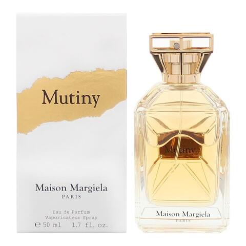 Launch year: 2018. Fragrance Family: Amber Floral. Top notes: Orange, Mandarin orange. Heart notes: Tuberose, Pear, Peach, Orange blossom, Apple, Pink pepper, Saffron. Base notes: Vanilla, Leather, Patchouli, Agarwood (oud). Design house: Maison Margiela. Design house category: fashion. Design house country: France. Scent name: Mutiny. Gender: Unisex. Category: Fragrance. SubType: EDP Spray. Size: 1.7 oz. Barcode: 3614271727602. Maison Margiela Unisex Mutiny EDP Spray 1.7 oz Fragrances 3614271727602. <br/><br/> This item is only valid for shipment in the Contiguous United States & Canada.