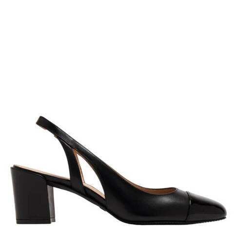Stuart Weitzman Ladies Heels. SKU: SF964 BLK-BLACK. Color: Black. These Stuart Weitzman slingback pumps are crafted from leather and feature a contrasting patent toe cap for a chic, modern touch. Designed with a low 50mm block heel and a convenient slingback strap, they offer both style and comfort for effortless wear. 100% Leather. <br/><br/><b>Please visit the brand website for sizing information.</b>