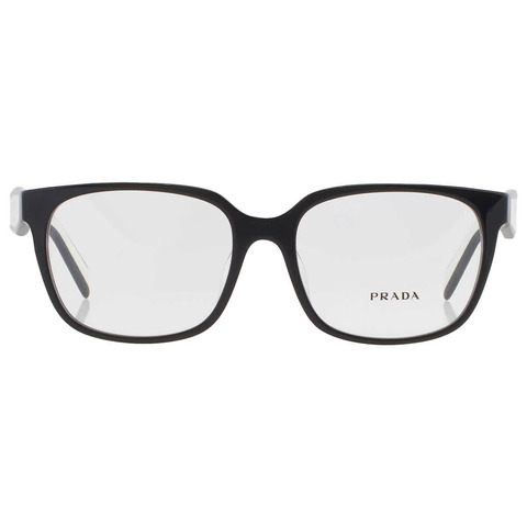 Prada Eyeglasses. Series number: PR 17ZVF. Color code: 1AB1O1. Shape: Rectangular. Lens Width: 55 mm. Lens Bridge: 17 mm. Arm Length: 140 mm. Frame Material: Acetate. Frame Color: Black. Lenses Type: Demo. Rim Style: Full-Rim. UPC/EAN code: 8056597877213. Prada Demo Rectangular Ladies Eyeglasses PR 17ZVF 1AB1O1 55.<br/><br/>Manufacturer's Packaging Included. Packaging Size And Color May Vary.