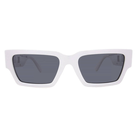 Versace Sunglasses. Series number: VE4459. Color code: 314/87. Shape: Rectangular. Lens Width: 54 mm. Lens Bridge: 18 mm. Arm Length: 140 mm. 100% UV protection. Non-Polarized. Frame Material: Acetate. Frame Color: White. Lenses Type: Dark Grey. Rim Style: Full-Rim. UPC/EAN code: 8056597922241. Versace Dark Grey Rectangular Unisex Sunglasses VE4459 314/87 54.<br/><br/>Manufacturer's Packaging Included. Packaging Size And Color May Vary.