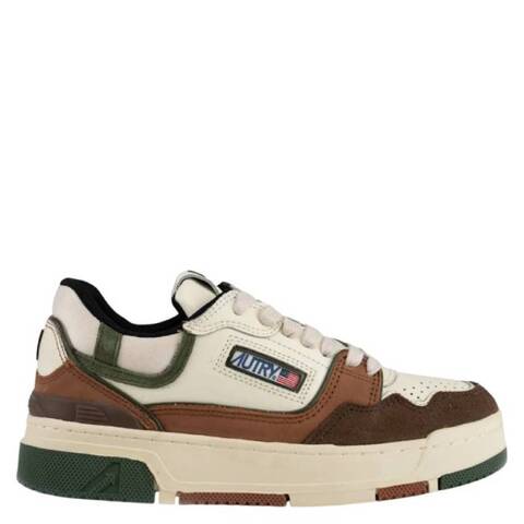 Autry Ladies Sneakers. SKU: ROLWUN03-SUEDE/NABUK EBONY/MIL. Color: Suede/Nabuk Ebony/Mil. Autry CLC Low-Top Panelled Sneakers. The CLC sneaker combines premium calf leather with suede paneling for a stylish colour-block design. Featuring a front lace-up fastening, a branded heel counter, and a logo-embroidered tongue, it offers both branding and detail. The padded ankle and perforated toebox ensure comfort and breathability, while the round toe and branded leather insole add a refined touch. Finished with a mesh lining and a flat rubber sole. <br/><br/><b>Please visit the brand website for sizing information.</b>
